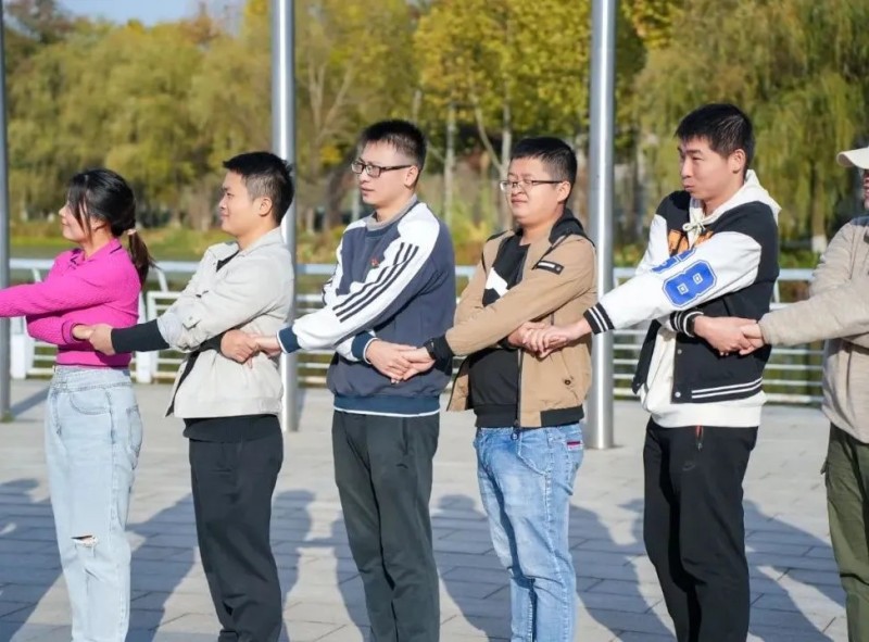 所有人相互挽著胳膊坐在地上,再同時(shí)站起來,考驗(yàn)團(tuán)隊(duì)默契。